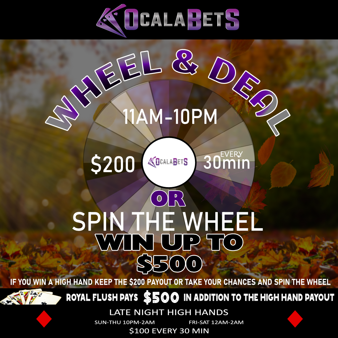 HH – 9AM-11AM $599 ~ 11AM-10PM $200 EVERY 30 MIN or SPIN THE WHEEL ~ 10PM-2AM $100 EVERY 30 MIN |